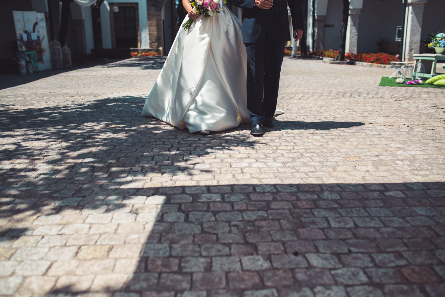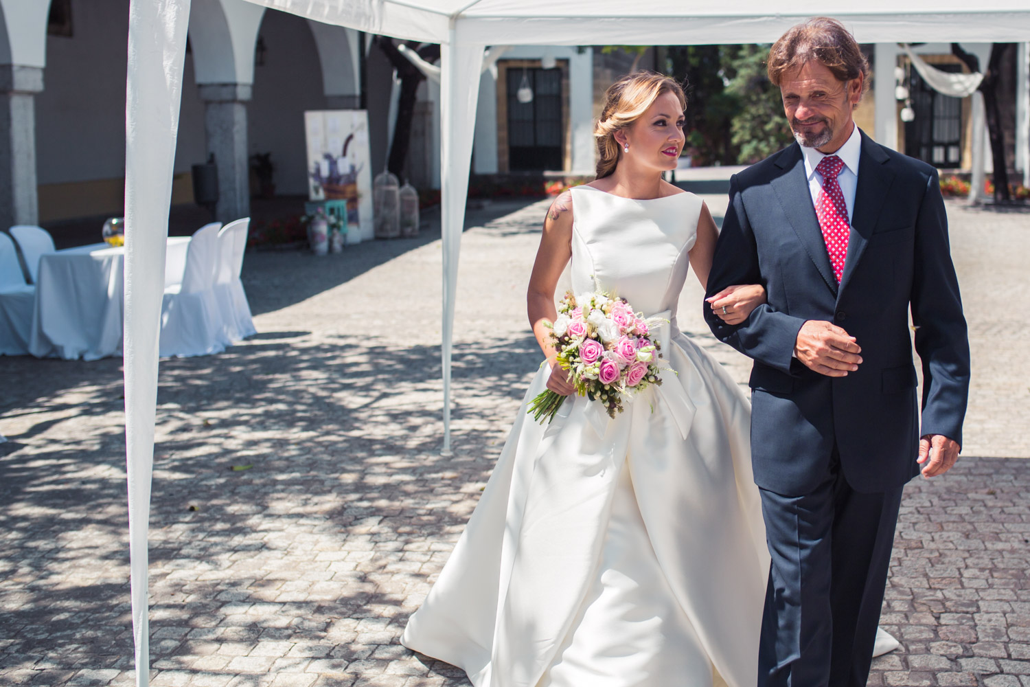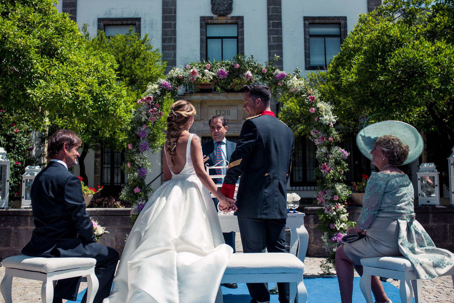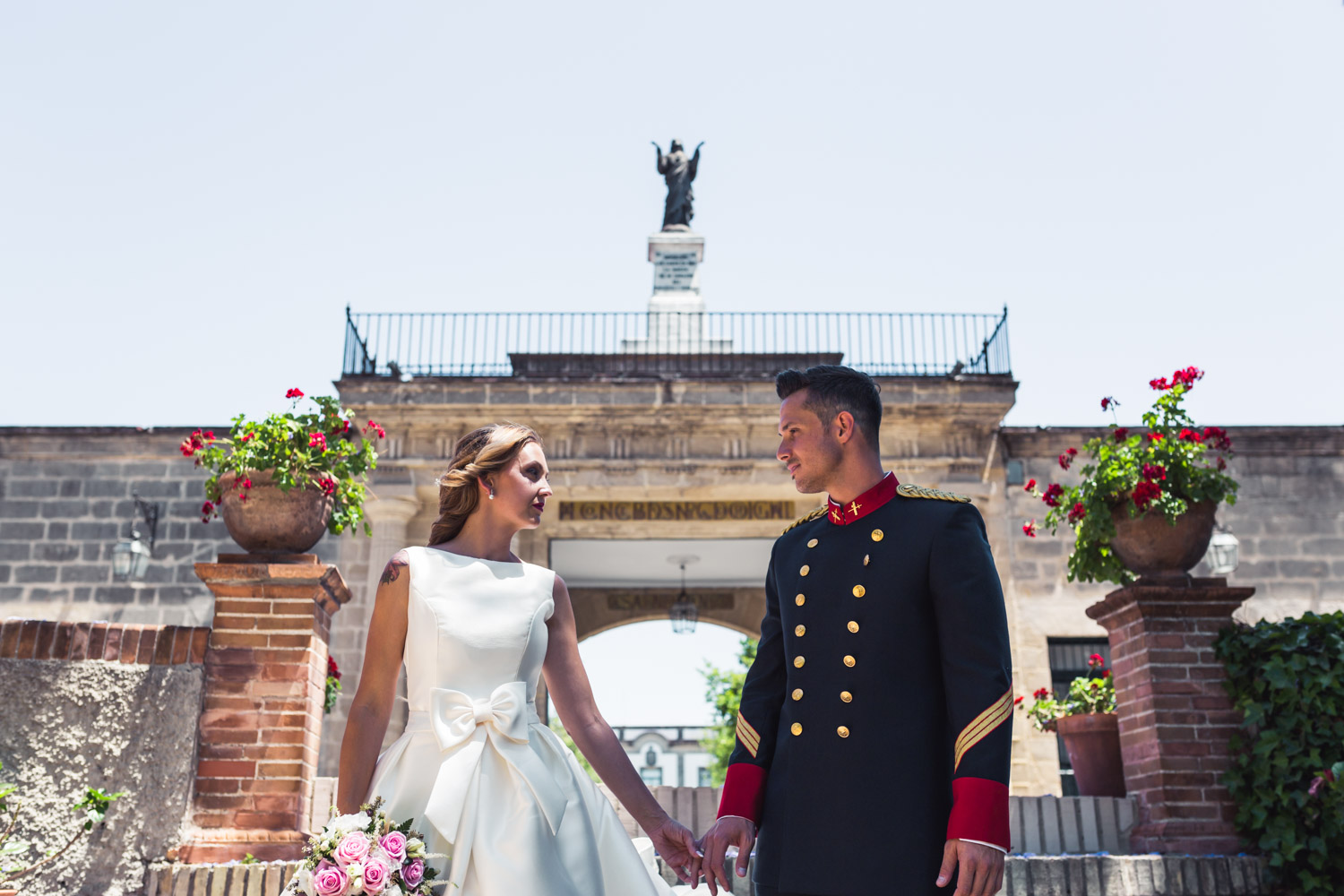 La bodega más antigua de Jerez de la Frontera. Un lugar precioso, con un gran jardín, patios antiguos y salones repartidos por toda la bodega. La ceremonia se celebró en el patio principal de la bodega, dando lugar más tarde a los aperitivos y al espectáculo ecuestre.