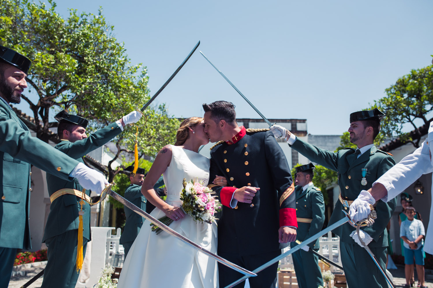 Los compañeros de Juan formaron un imponente pasillo de sables, dónde él tuvo que besar a la novia para poder pasar (tampoco le supuso un esfuerzo).